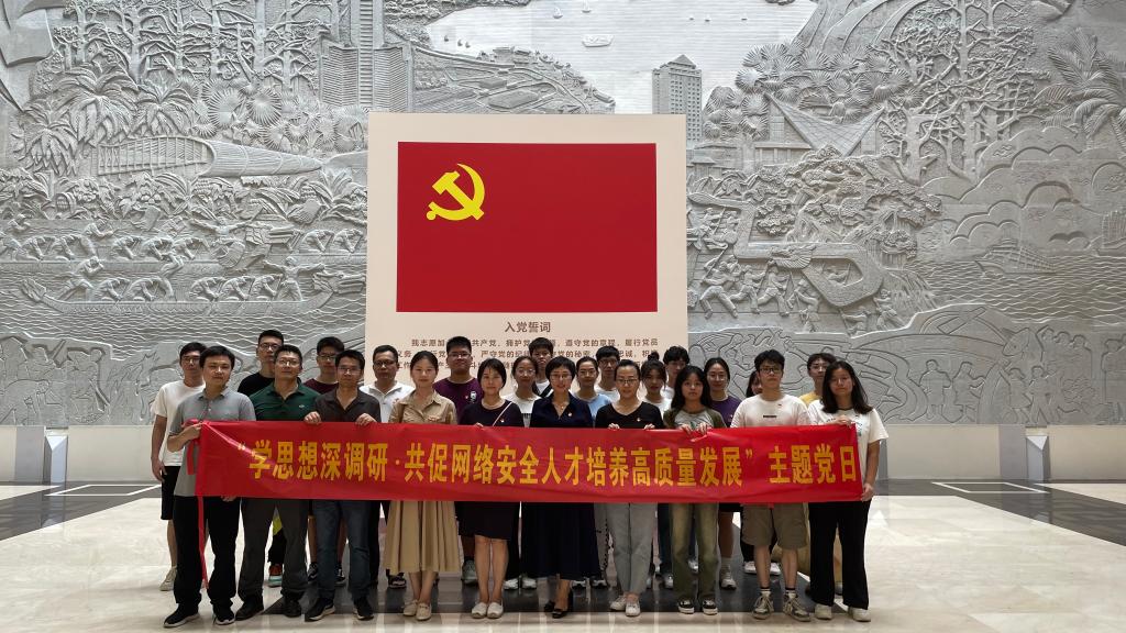 教工党支部书记陈桂宏以“学思想在网络空间安全专业的实践和应用”为题,面向师生党员现场讲授了专题党课。她强调,作为网络空间安全专业的教师,要从这次实践学习中汲取党的精神力量和智慧,将其融入到日常的专业教学和实践中,通过学思想来接力量、促科研、促实践、培养网络空间安全“红人”;作为网安学子,要肩负起时代责任,深刻领悟党的理论与实践在网络空间安全专业学习中的重要性。最后呼吁师生们,要以更加昂扬的斗志和更加坚定的信念,为网络空间安全事业的发展贡献自己的力量!