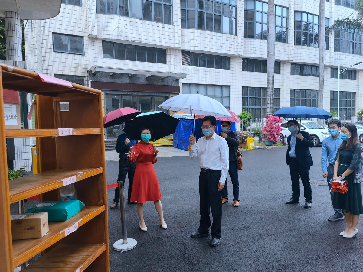 凌靖波书记一行先后到西校区门口检查人员、车辆入校信息核查等登记台账,了解物资配备、外卖取餐安排等情况,深入教学楼查看实验室建设、现场听取西校区微改造建设进展汇报。