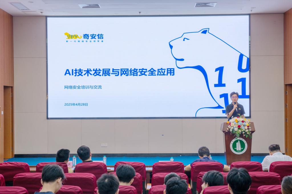 随后,郑少彦作了《AI技术发展与网络安全应用》主题报告。他细致讲解了AI技术的发展概览、AI带来的安全风险,并详细介绍了针对AI的攻击方法、AI的网络安全应用。刘晖作了《国产操作系统发展之路》的主题报告。他详细介绍了国产操作系统与网信产业的发展,分析了市场人才需求与就业信息,并从专业证书、书籍推荐、赛事活动、课程学习等方面给员工的成长发展提供了建议。陈健庆开展了《松科智能科技平台产品介绍》,杜家鑫也开展了《基于麒麟的国产自动化会议系统》介绍。