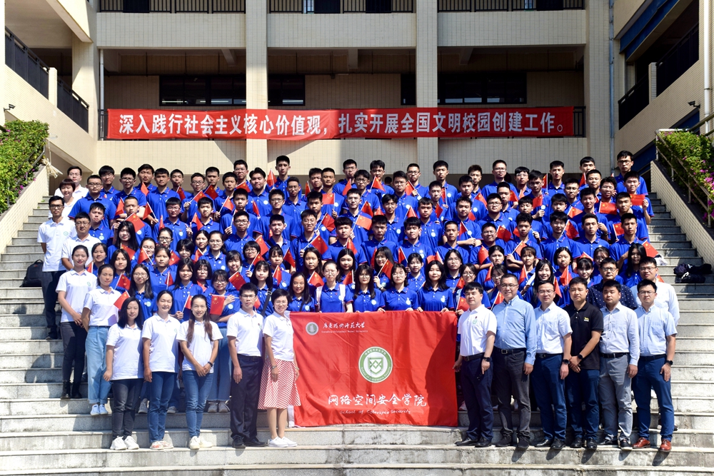 典礼在99名新同学嘹亮的“为维护网络安全、助力网络强国建设,实现中华民族伟大复兴的中国梦而努力奋斗。”的激昂宣誓中圆满结束。