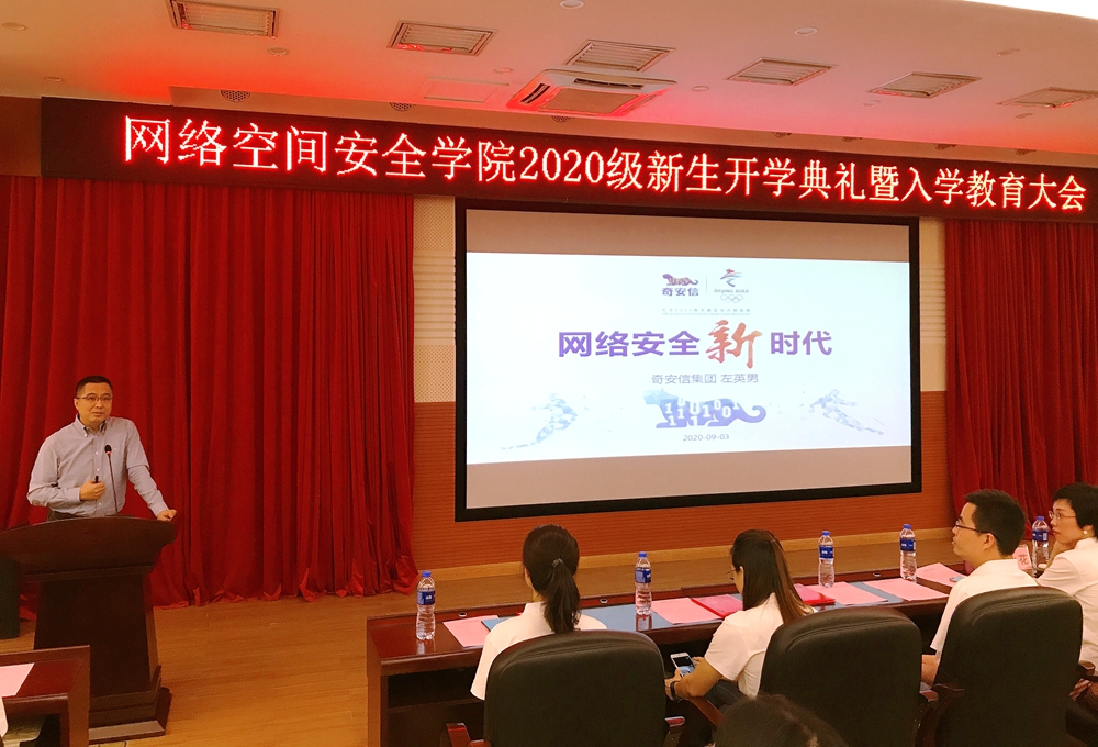 10月10日上午,伟德国际1946在白云校区三教报告厅举行2020级新生开学典礼暨入学教育大会。奇安信科技集团股份有限公司合伙人、副总裁左英男,企业导师团、伟德国际1946全体教师和99名首批新生参加了典礼。