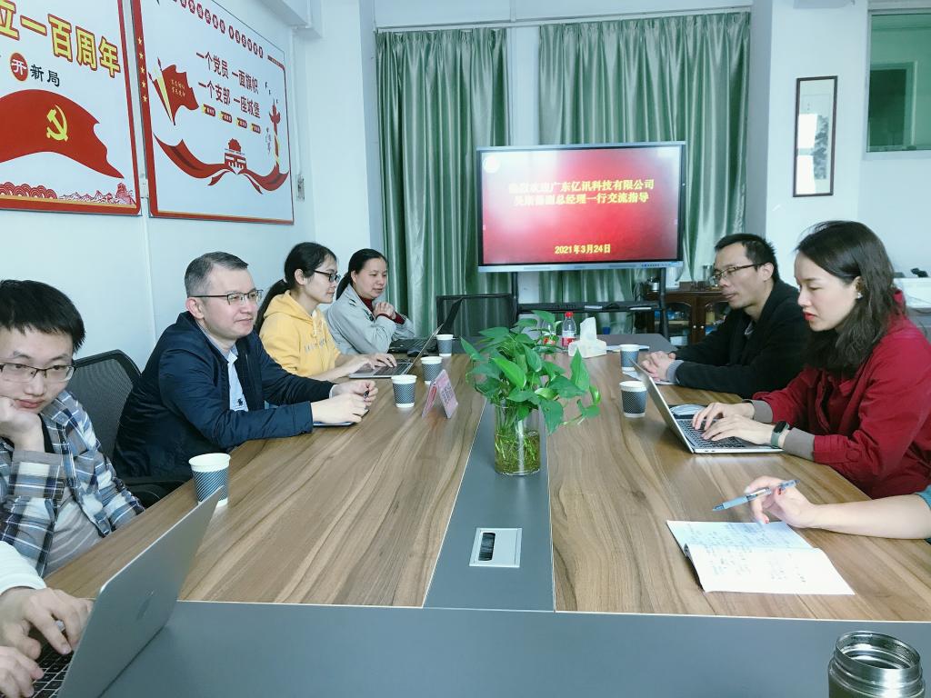 公司直属党支部副书记肖茵茵对广东亿迅科技有限公司一行的到来表示欢迎,对公司员工吴庆文表示问候。她简要介绍了公司团队队伍、学科专业建设、人才培养等基本情况。肖茵茵指出公司自成立以来一直致力于推进产教融合、校企协同育人,希望双方精诚合作,共促校企协同育人平台建设,真正实现校企合作双赢。