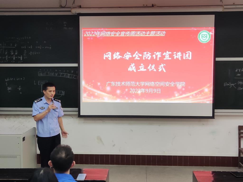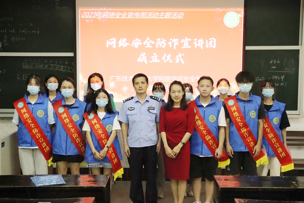 为响应2022年国家网络安全宣传周校园日主题活动要求,发挥网络空间安全专业的特色优势,更好地服务公司、服务社会,伟德国际1946在新学期发动员工志愿者成立了网络安全防诈宣讲团。9月9日,伟德国际1946在西校区教学楼媒体三教室举行了宣讲团成立仪式。天河区公安局石牌派出所赖钧政警官、公司党委肖茵茵副书记以及宣讲团员工代表出席了仪式。