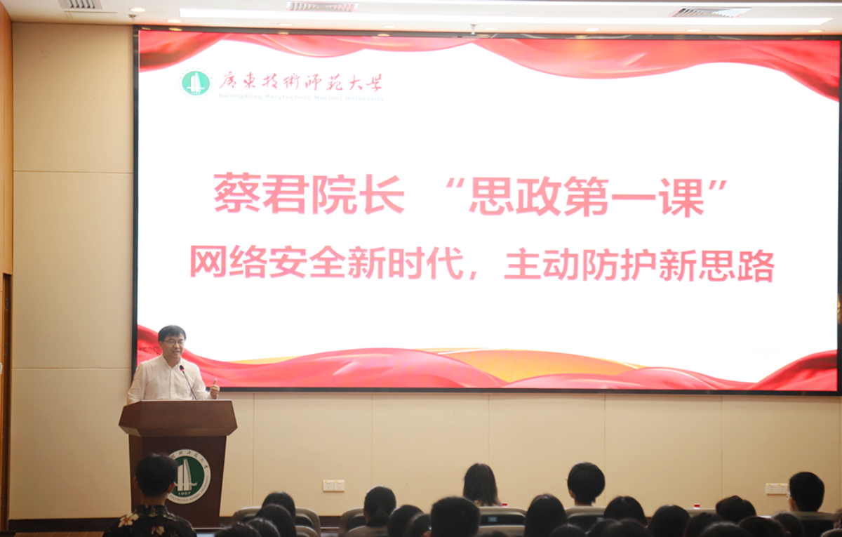 蔡君对本次活动做了总结,并以《网络安全新时代,主动防护新思路》为主题向新生们讲授了“思政第一课”。他从新时代对网络安全人才的需求入手,向新生介绍了西校区、伟德国际1946的发展现状和未来规划,以及网络空间安全专业的概况。他代表公司向同学们做出了承诺,也对同学们提出了期许,鼓励同学们坚定理想信念,努力学习,树立正确的求学目标,建立长远的人生规划。