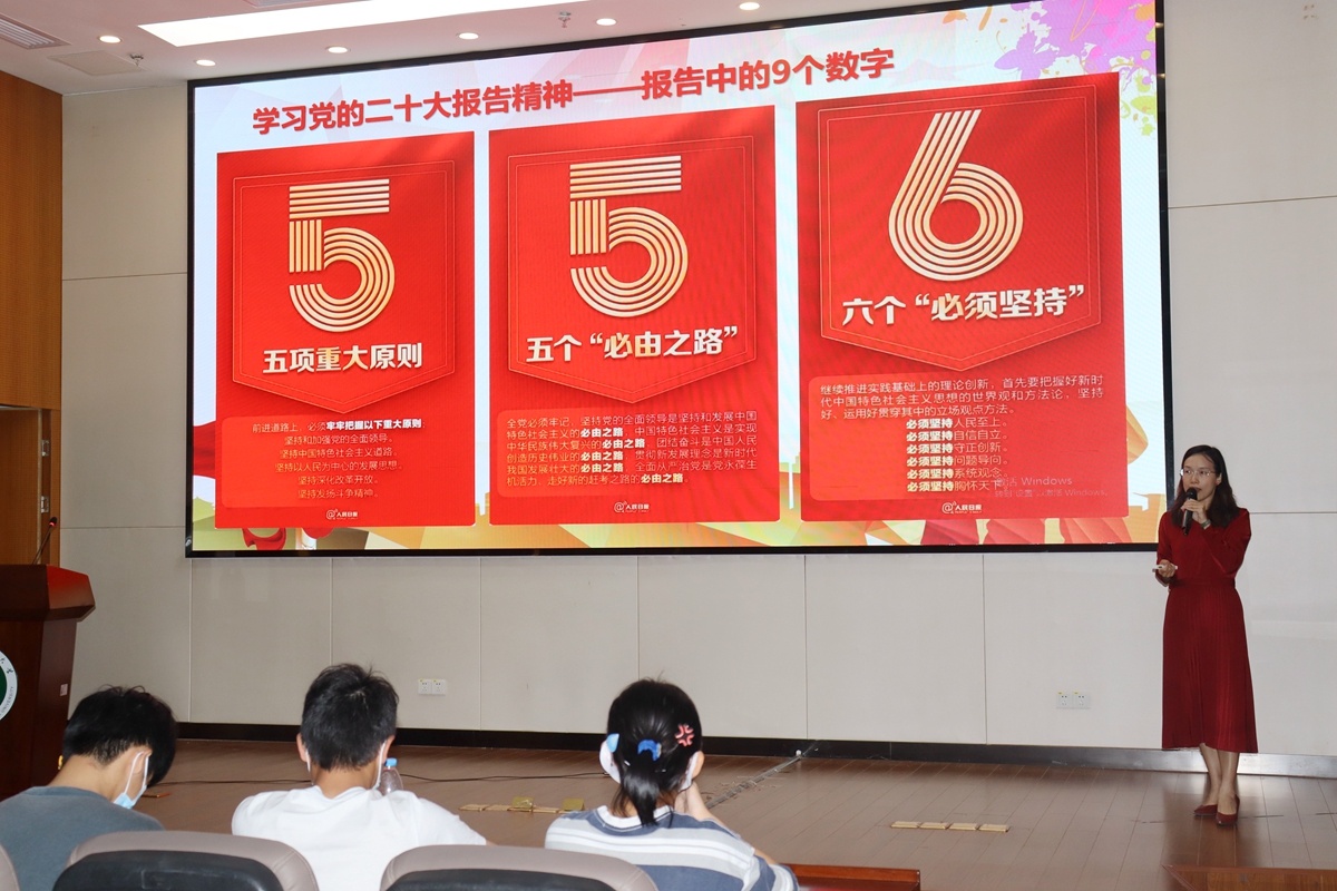 讲座由公司党委副书记肖茵茵主讲。她首先结合习近平总书记在中国共产党成立100周年庆祝大会发表的重要讲话精神和在中国共产党第二十次全国代表大会上所作的报告精神,介绍了党的性质宗旨和光辉奋斗历程,引导同学们正确认识共产党,鼓励大家永远跟党走,奋进新征程,不负习近平总书记对青年的殷切希望。