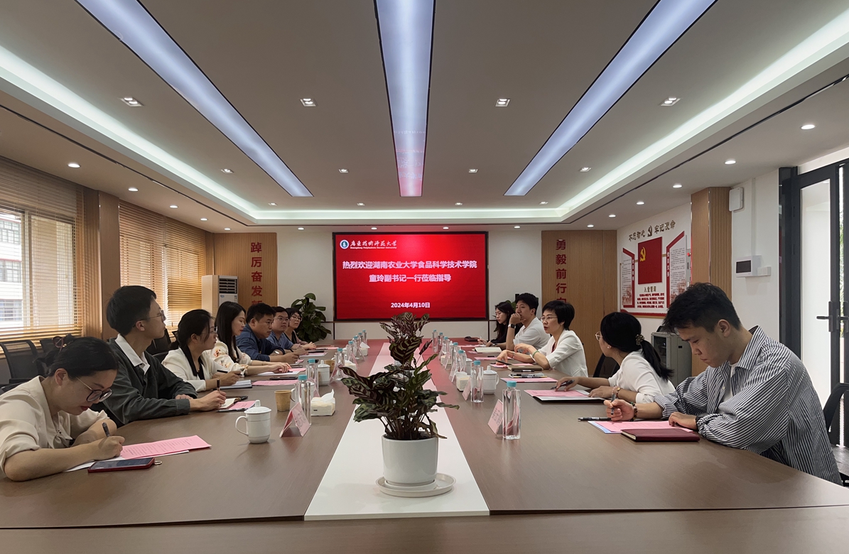 4月10日下午,湖南农业大学食品科学技术公司党委副书记童玲一行4人、广东省名辅导员工作室一行6人到公司开展员工工作调研交流。公司党委书记陈小花、副书记肖茵茵及公司全体政工队伍参加了此次会议。