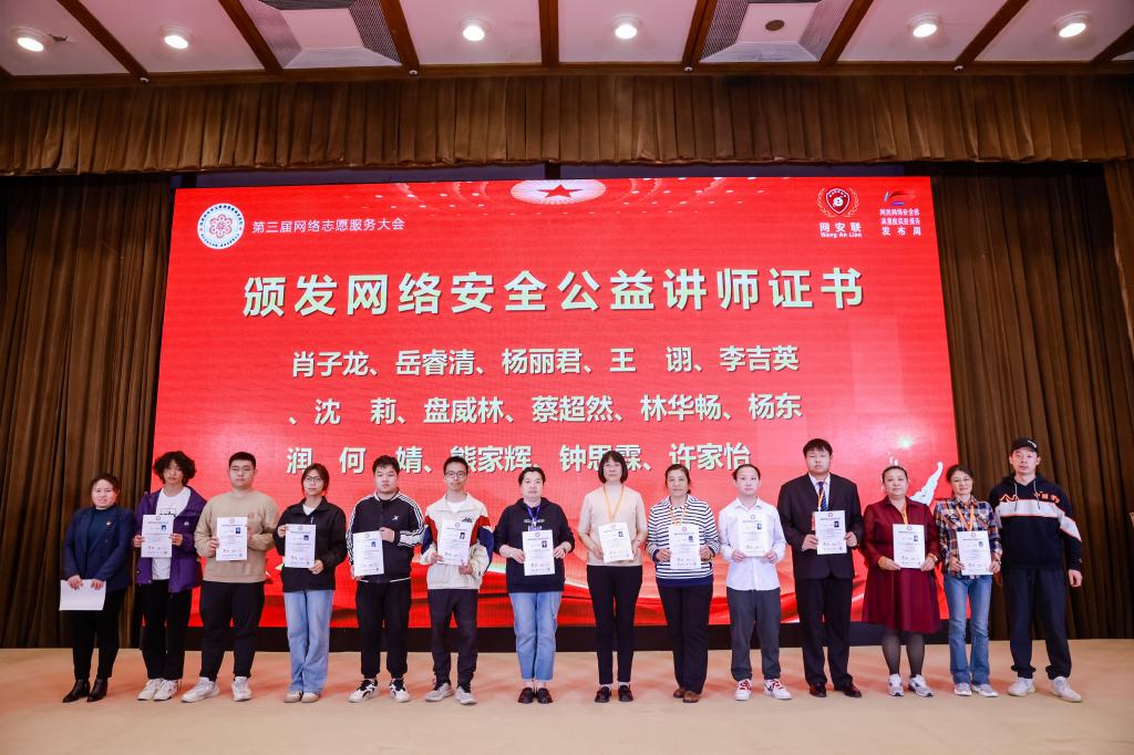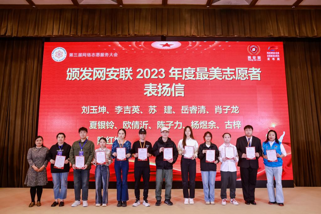 在会上,公司伟德国际1946网络安全志愿服务站被评选为“2023年度优秀网络安全志愿服务站”,志愿者代表、2021级网络空间安全3班陈子力同学被评选为“网安联2023年度最美志愿者”,并分别获得2023年“安满周”组委会颁发的表扬信;网络安全科普科创协会的9名同学获得了网络空间安全公益讲师认证证书。