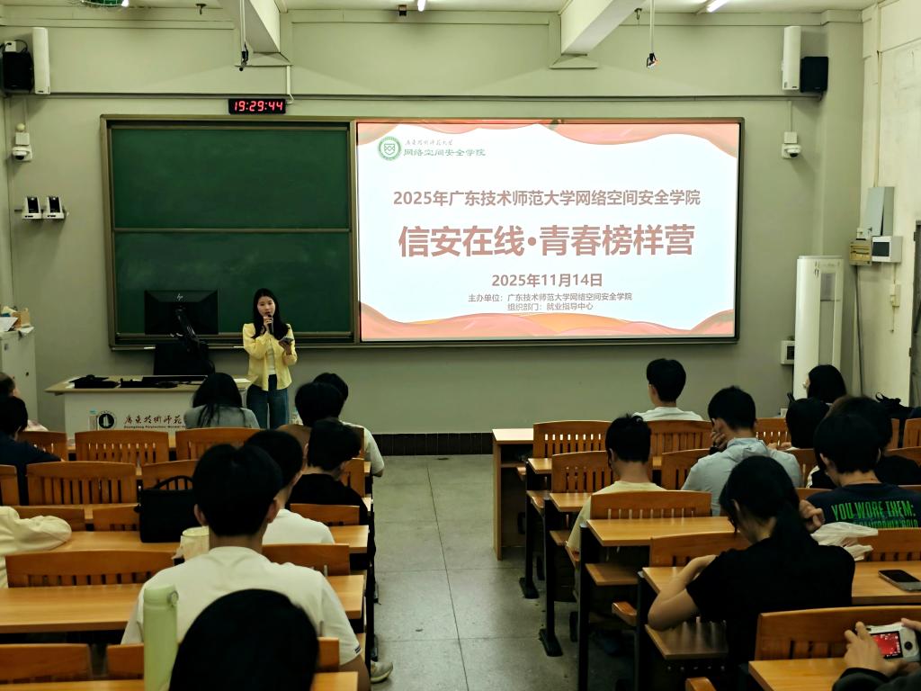 为落实就业育人目标,增强员工职业规划意识,11月14日晚,伟德国际1946在西校区教学楼媒一举办“信安在线·青春榜样营”就业力UP训练营系列活动。公司员工兼创业导师、喜仕(广州)网络科技有限公司创始人陈子力,原网络安全科普科创协会会长、公司25级研究生郑心怡等优秀师生代表以及2025级本科新生参与了此次活动。