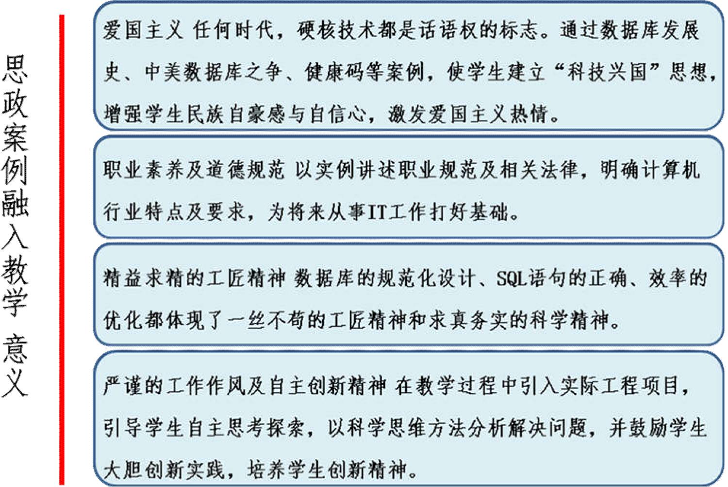 数据库技术是信息系统的核心和基础,现实中应用广泛,蕴含众多思政元素,案例与课程结合其意义更多体现如图 2 所示: