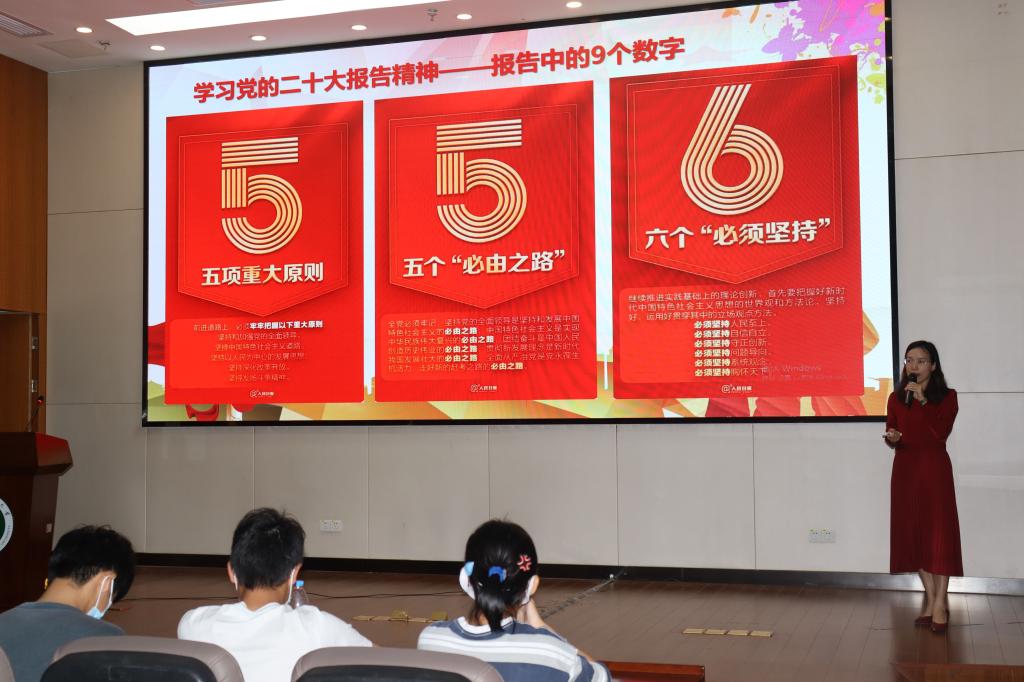 肖书记首先通过讲解党的光辉奋斗历程、党对民族对世界对人类文明的贡献以及党的性质和宗旨,提高了同学们对党的认识,引导同学们学习党的二十大精神,永远跟党走,奋进新征程,不负习近平总书记对青年的殷切希望。