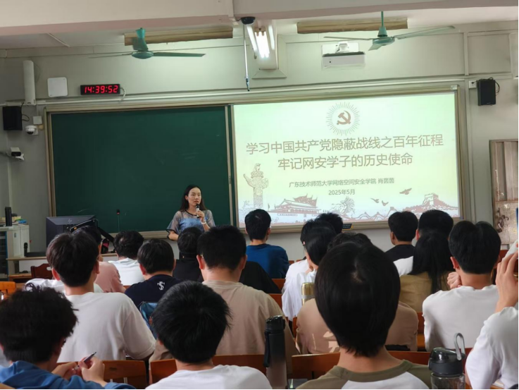 公司党委副书记肖茵茵作首场专题授课。肖茵茵系统梳理了党的隐蔽战线发展历程,以“龙潭三杰”、“李侠”、“沈安娜”等先辈事迹为鉴,阐释了“保守党的秘密”核心宗旨,强调隐蔽战线忠诚担当精神的时代价值。肖茵茵指出,数字经济背景下网络空间已成为新时代 “隐蔽战场”,作为网安学子,要将党史学习与专业学习深度融合,既熟练掌握网络攻防、数据加密等核心技术,又继承隐蔽战线精神,将个人理想融入国家网络安全事业,成长为政治与专业兼备的优秀人才。